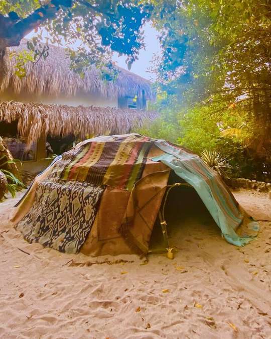 Es un escenario abierto, un árbol hermoso en armonía con la naturaleza, ideal para meditaciones, rituales de unión y encuentros espirituales, donde la energía del lugar sostiene procesos de transformación y sanación. En su centro, el Templo de Gratitud, consagrado por el Mamo Kaku, se convierte en un punto de ofrenda y conexión energética dentro de Namasté.